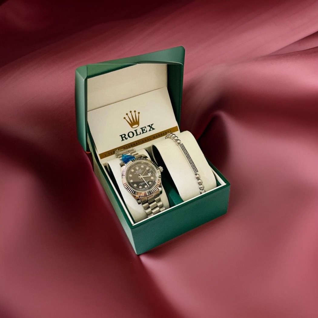 שעון כסוף ורוד