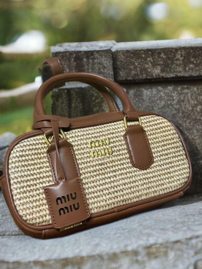 תיק קש MIU MIU שילוב עור חום